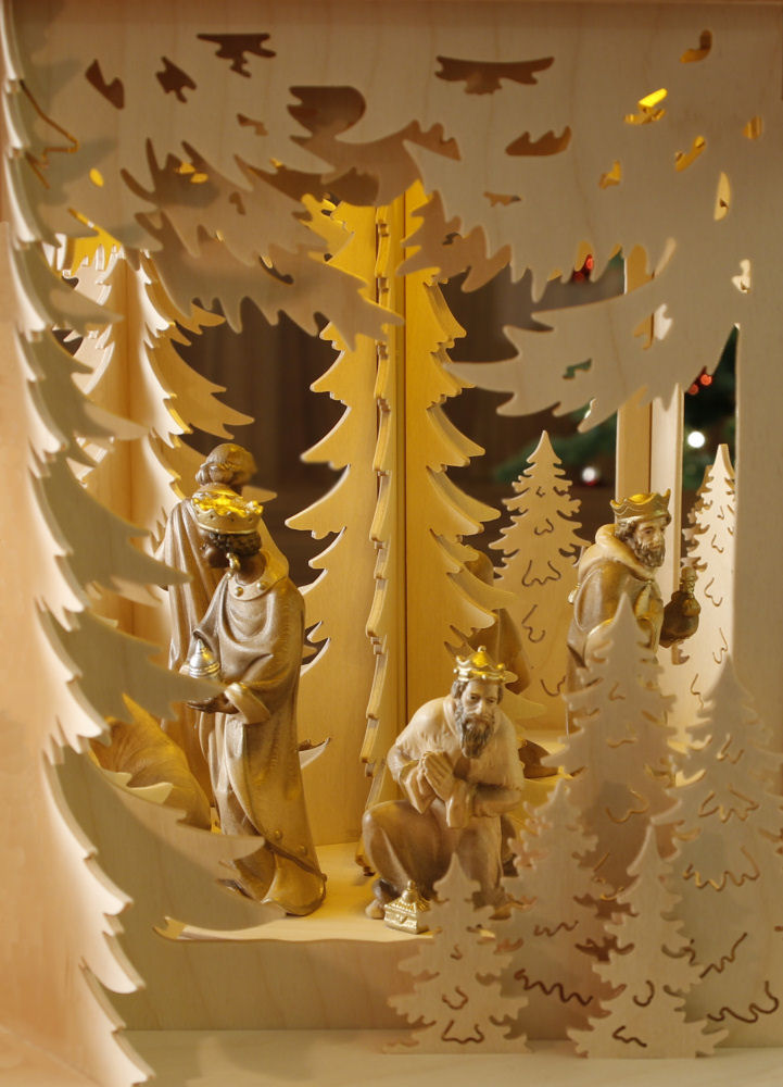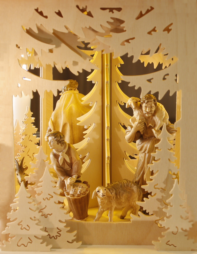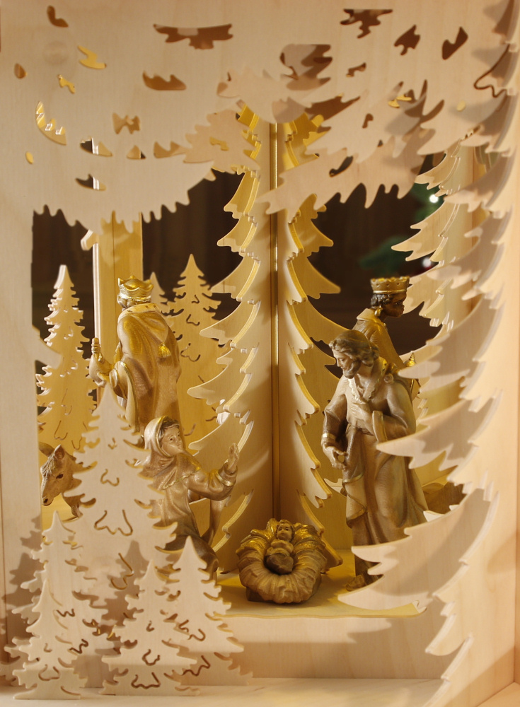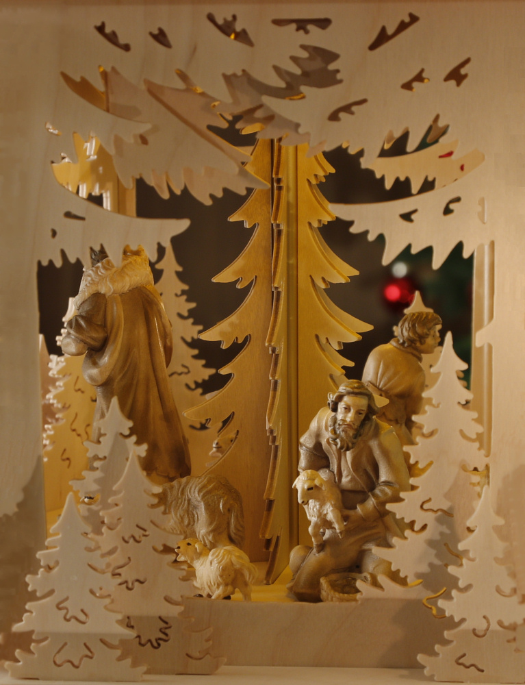 "Waldidyll" Modell: Christi Geburt / Grödnertal Innenbeleuchtete Etagen! mit Motor und 9 elektrischen Kerzen