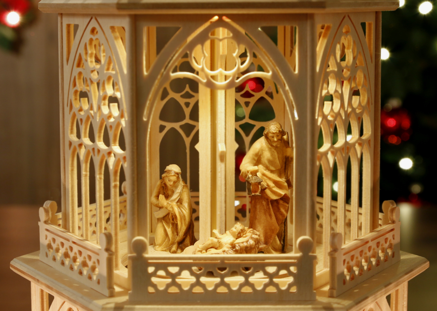 "Heilige Familie" Innenbeleuchtete Etagen! betrieben mit 6 Teelichtern oder Kerzen (ohne Motor) (Teelichthalter inkl. Adapter für Kerzen)
