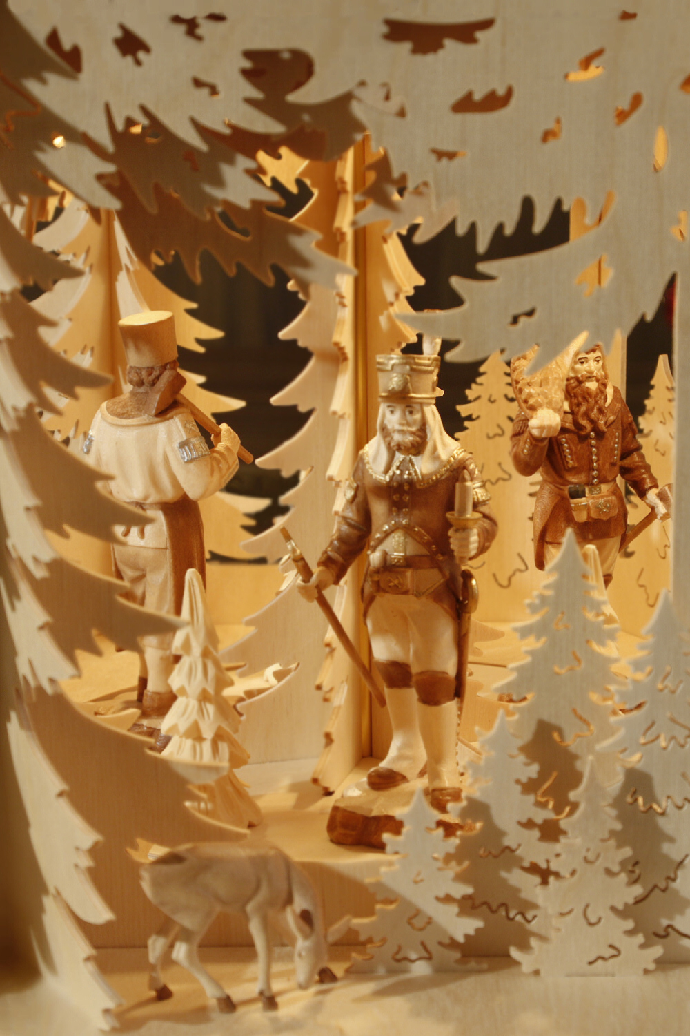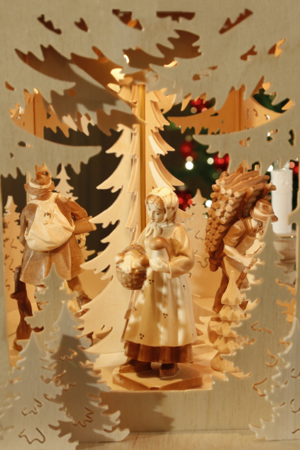 "Waldidyll" Modell: Bergmann - Grödner Holzschnitzerei Neuheit: Innenbeleuchtete Etagen! mit Motor und 9 elektrischen Kerzen